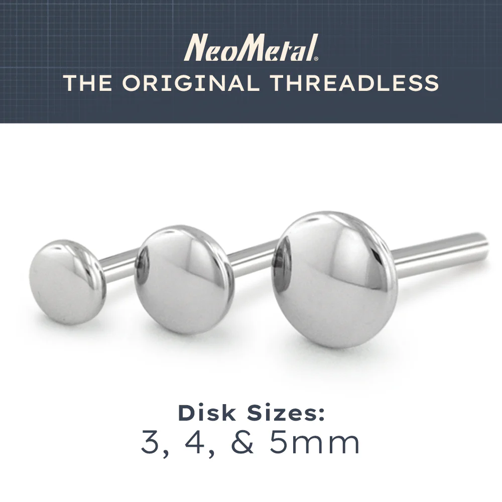 Our 16ga threadless labret posts are available in a variety of lengths and are universally compatible with all of our threadless ends. Not recommended for use with 1.5mm ends due to pull-through risk.