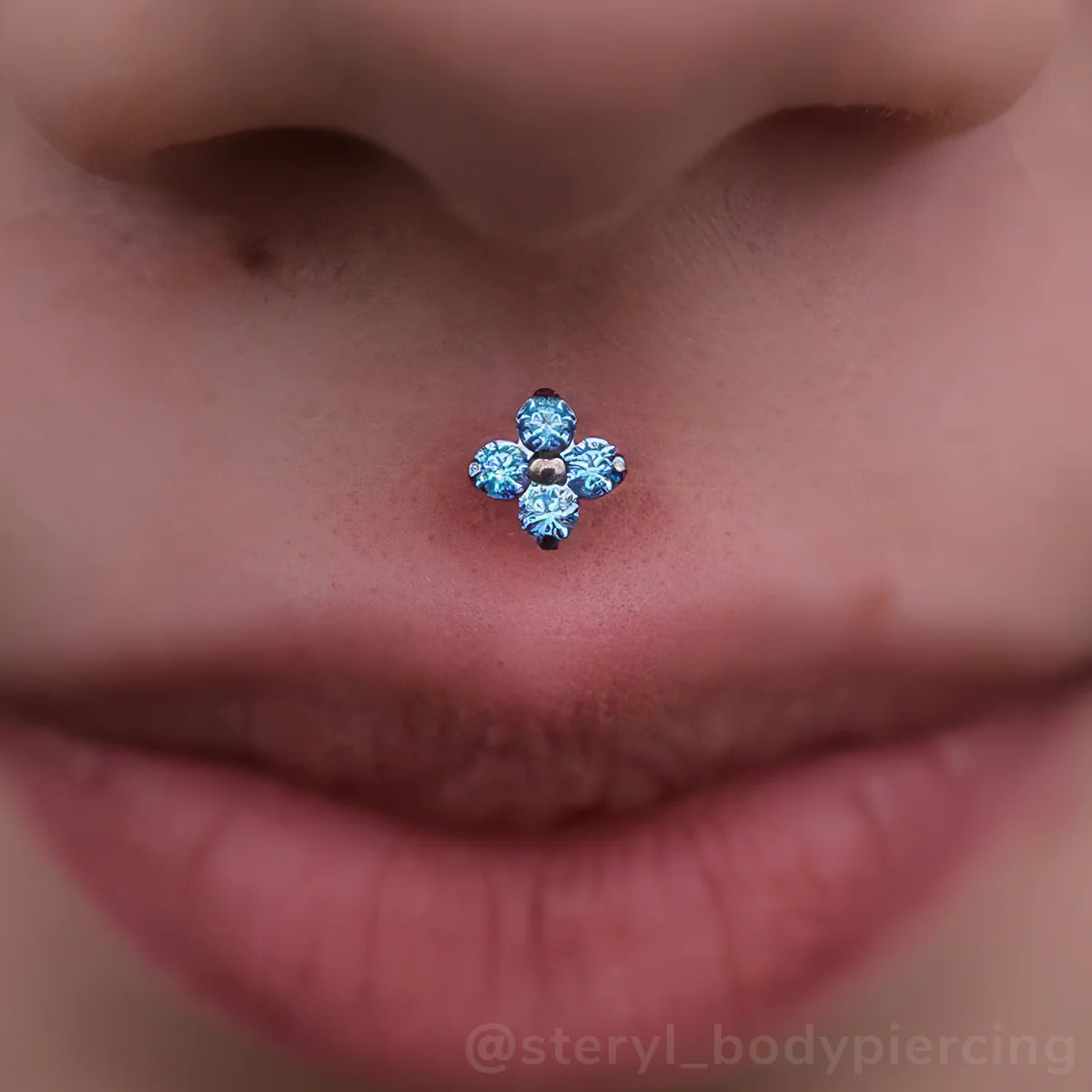 Our dazzling Forte ends are now available in implant-certified titanium. This classic design beautifully displays four sparkling 1.5mm or 2mm gems in a wide range of colors.